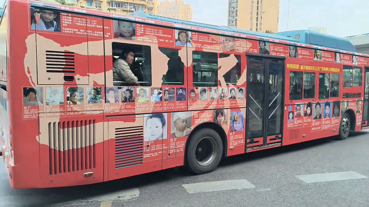 近日,重庆一辆公交车因其独特的车衣,在线上线下吸引了不少人的注意——通体红色的公交车外部,印上了32位失踪儿童的个人信息。