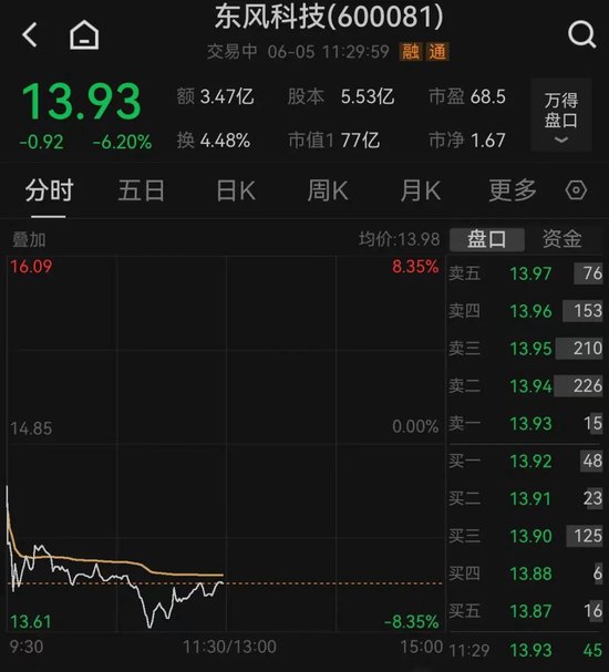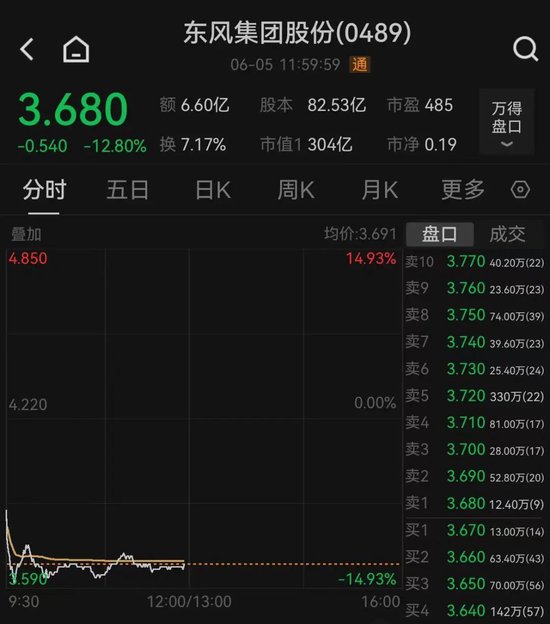 今日(6月5日)早盘,“东风系”上市公司集体大跌。