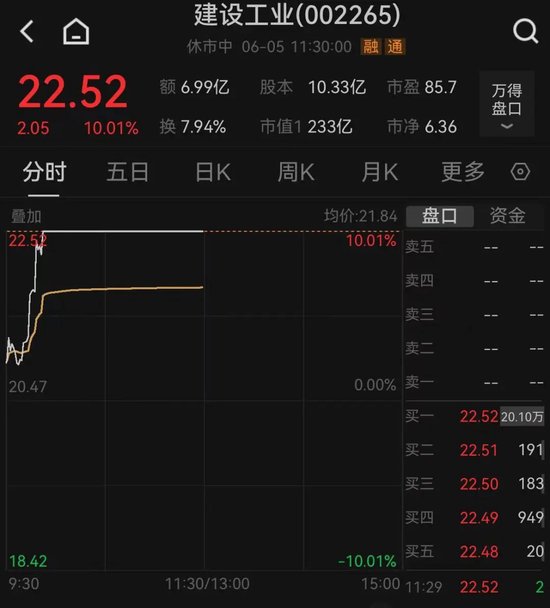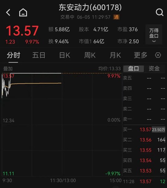 东安动力(600178)、湖南天雁(600698)、建设工业(002265)则大幅拉升涨停。