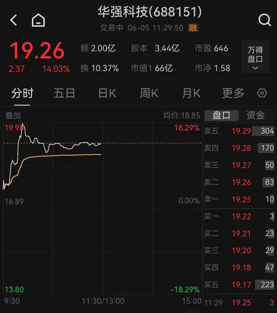 华强科技(688151)一度大涨超18%,截至午间收盘仍涨超14%。