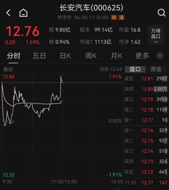 长安汽车(000625)早盘股价表现总体平稳,最高涨近2%,截至午间收盘涨1.59%。