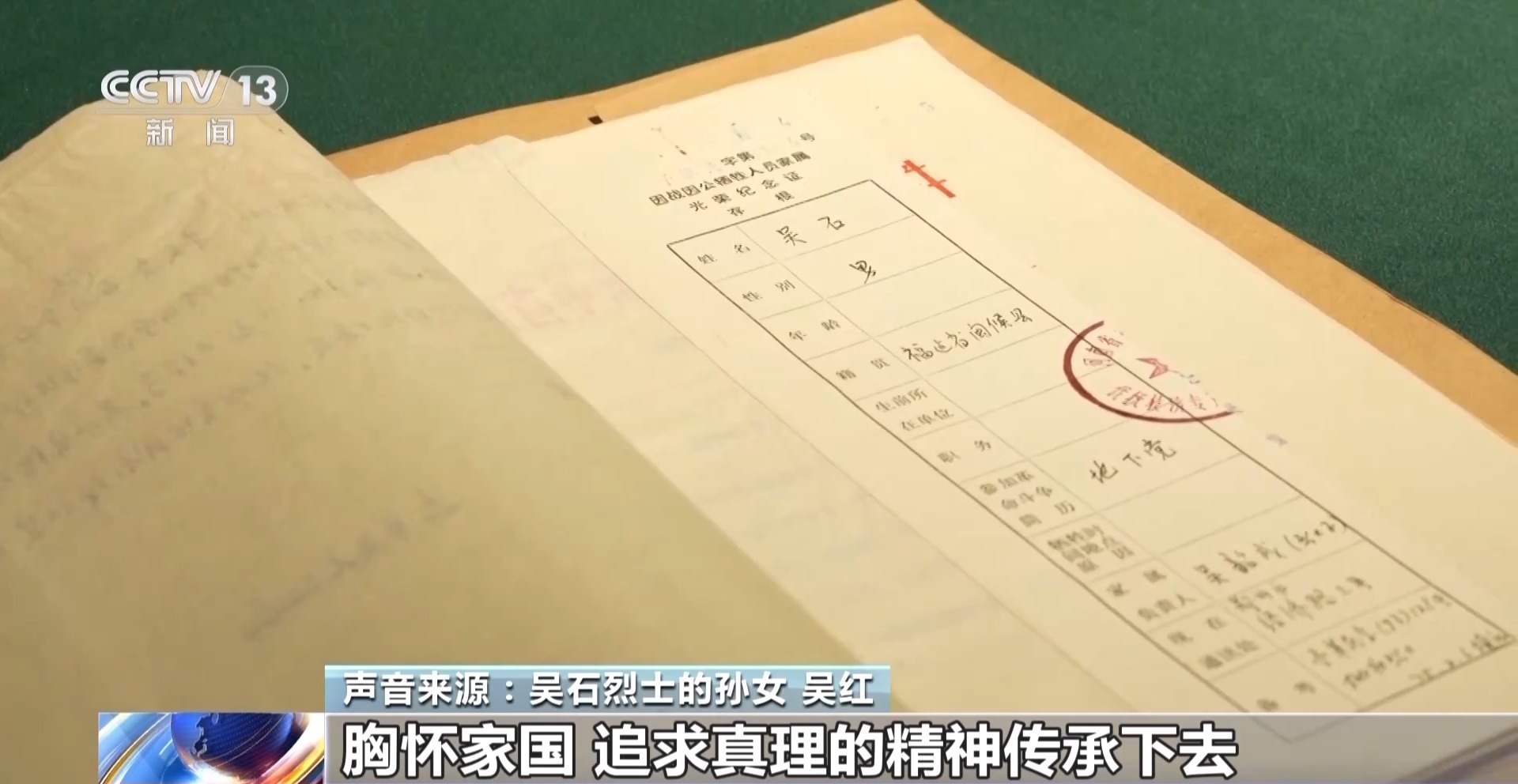 吴石烈士的孙女 吴红:大家都很敬仰这些先烈们,他们生前留下了这些宝贵资料,我们慢慢地能对这些先烈们了解更多。传承这段历史,让爷爷和先辈们,包括所有的先烈们的胸怀家国、追求真理的精神传承下去。