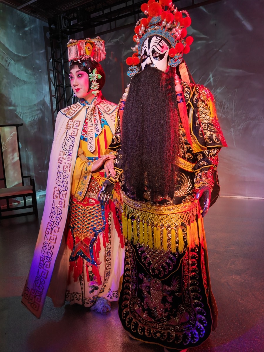 有意思的是,百年之后,全国首个拥有虚拟学籍学号、数字演艺设计专业的机器人博士生“学霸01”,不仅将在校学习4年,走进数智文艺创新实验室,而且真的出现在剧场里。最近,在西岸艺术中心,“学霸01”的公演处子秀,就是实验戏曲《霸王别“机”》。这位一身行头、满脸妆容的西楚霸王,面对真人“学妹”2024级学子王宇晨,唱起“力拔山兮气盖世……虞姬虞姬奈若何……”要不是戏服袖口刻意露出的机械手,一时难辨人机真假。